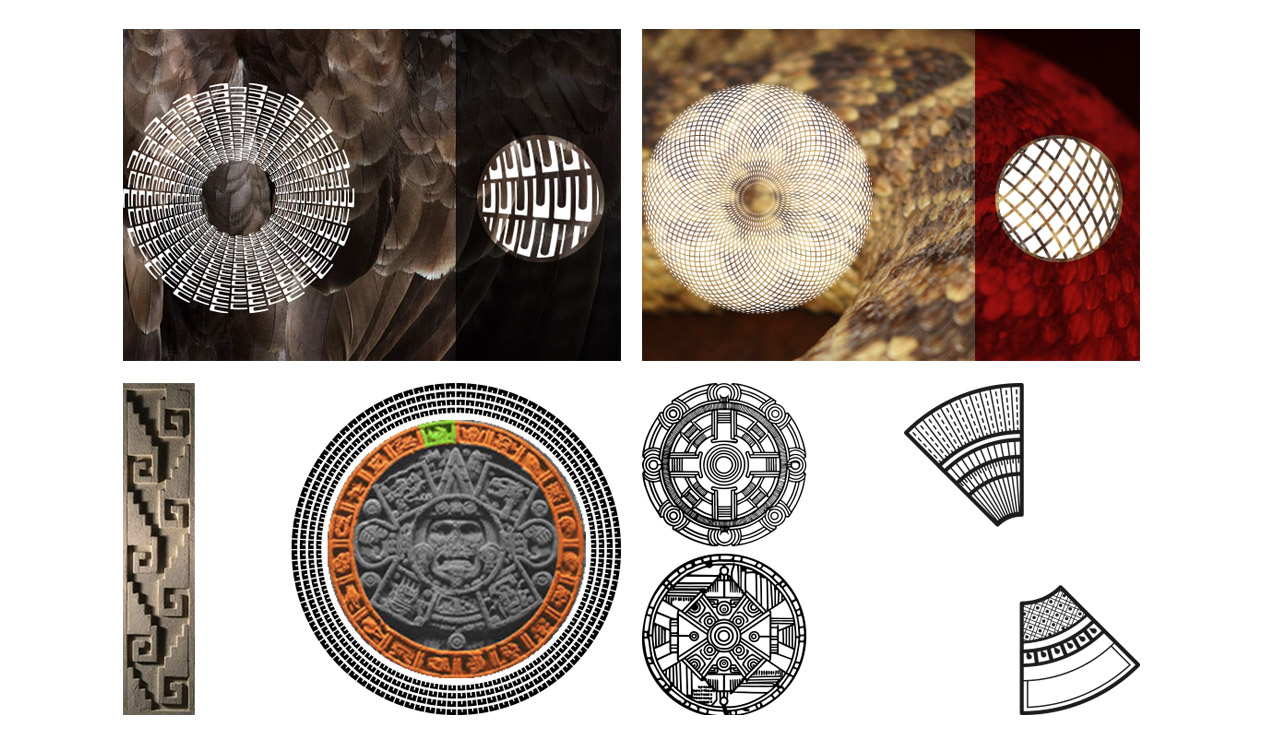 Inspiration: Stylized pre-Hispanic symbols and the presence of Tezcatlipoca.